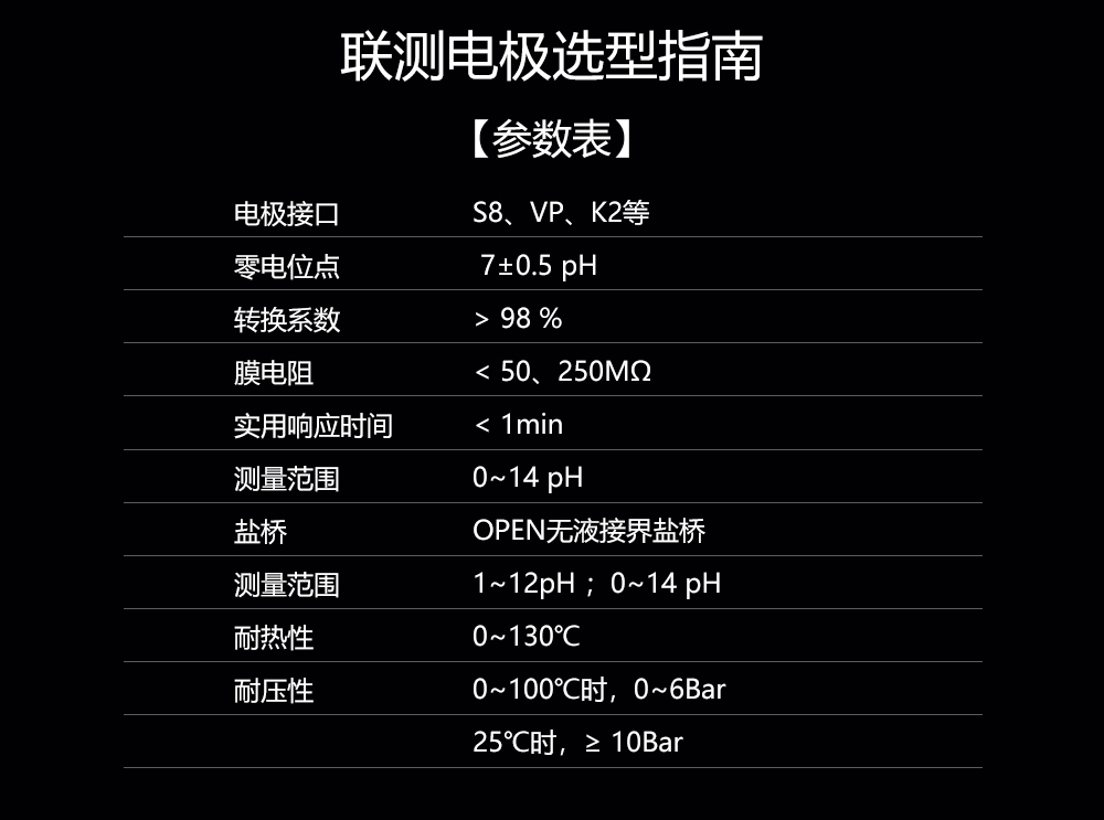 聯測SIN-pH5100電極使用耐壓半球形pH敏感膜,混合膠GMT構成的中介電介質,Ag/AgCL/KCL外參比體系,無鹽橋(OPEN)開口液接界所構成。廣泛用于純水和高純水以及復雜的化工流程。