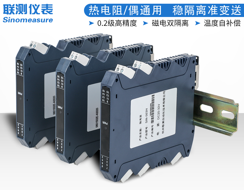 聯測溫度隔離器將PT100等熱電阻跟熱電偶信號轉換成各種電流、電壓等標準模擬量信號,可以與PC機、PLC、DCS等實現工控監測連接。抗干擾能力強,遠傳不受其他設備影響。輸入、輸出選擇范圍寬,準確度高。電源可選擇,導軌安裝便于檢測與安裝。廣泛應用于各種對溫度集中測量的監控系統中。