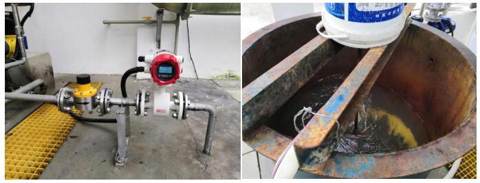 2020年8月,客戶向聯(lián)測(cè)成都辦事處反映他們使用的電磁流量計(jì)有不讀數(shù)和超聲波液位計(jì)屏幕指示燈不亮的情況。接到消息后,聯(lián)測(cè)工程師蘭工第一時(shí)間趕到現(xiàn)場(chǎng),檢測(cè)過程中發(fā)現(xiàn)通往與管道相連電磁流量計(jì)的設(shè)備桶內(nèi),銹跡嚴(yán)重,由于液體黏稠將銹跡帶入了流量計(jì),覆蓋住了測(cè)量電極,影響了流量計(jì)顯示。蘭工現(xiàn)場(chǎng)馬上同客戶一起清理設(shè)備內(nèi)部,并替換了一臺(tái)新的電磁流量計(jì)。對(duì)原電磁流量計(jì)進(jìn)行清洗后便可正常使用。