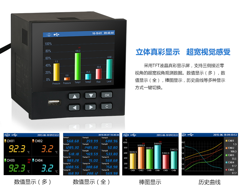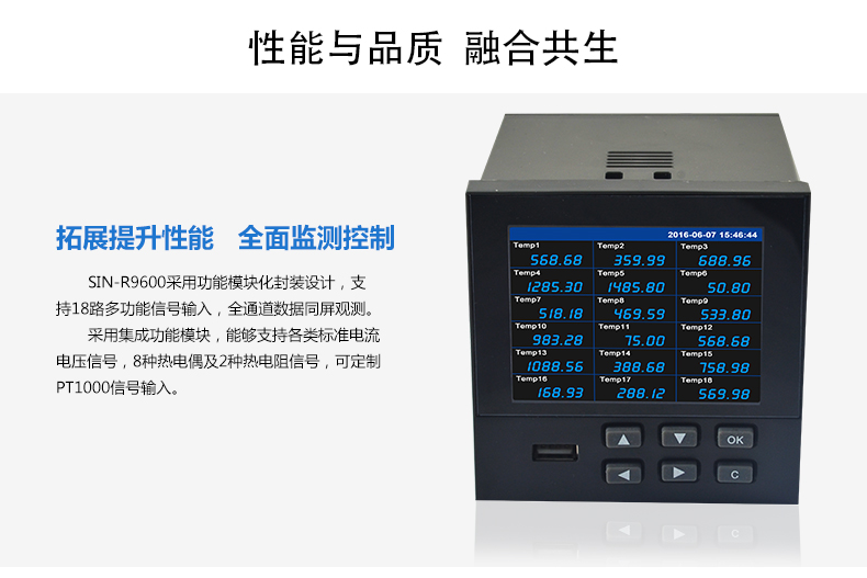 SIN-R9600無紙記錄儀內部采用高速、高性能32位cortex-M4微處理器。電路板經過“防腐、防潮、防塵”三防涂覆處理。高性能儀表電源有強大的抗干擾能力,能有效抑制外部諧波干擾,大大提高了整機的穩定性。