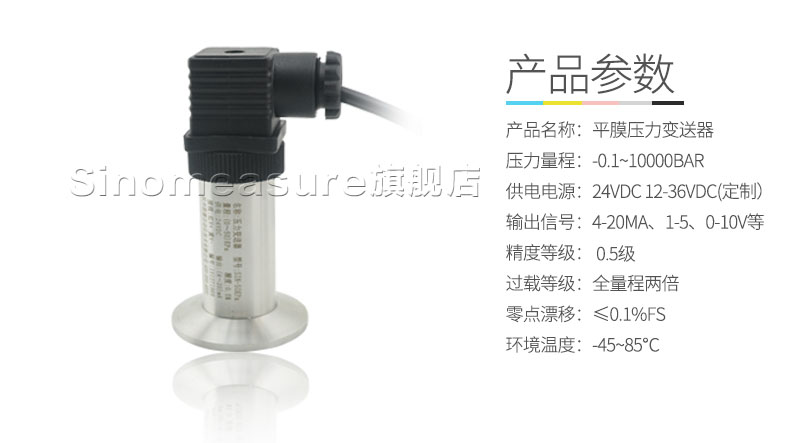 SIN-P350衛生平膜型壓力變送器,衛生平膜型液位變送器是測量端采用特殊堅固處理的齊平隔離膜片。結構緊湊、耐腐蝕,抗震動、抗微粒沖擊、寬范圍溫度補償。膜片采用316L不銹鋼材料,特別適用于醫療、食品行業有衛生要求的,粘稠流體壓力和液位測量,解決了結垢,堵塞,清潔衛生等問題。高精度的信號處理電路位于將傳感器輸出信號轉換為標準輸出信號,可直接與計算機、控制儀表、顯示儀表相連。