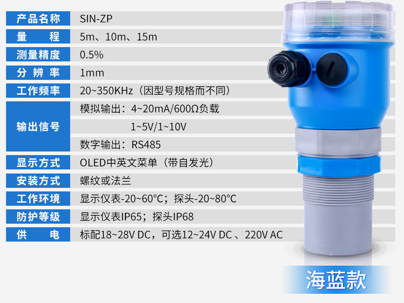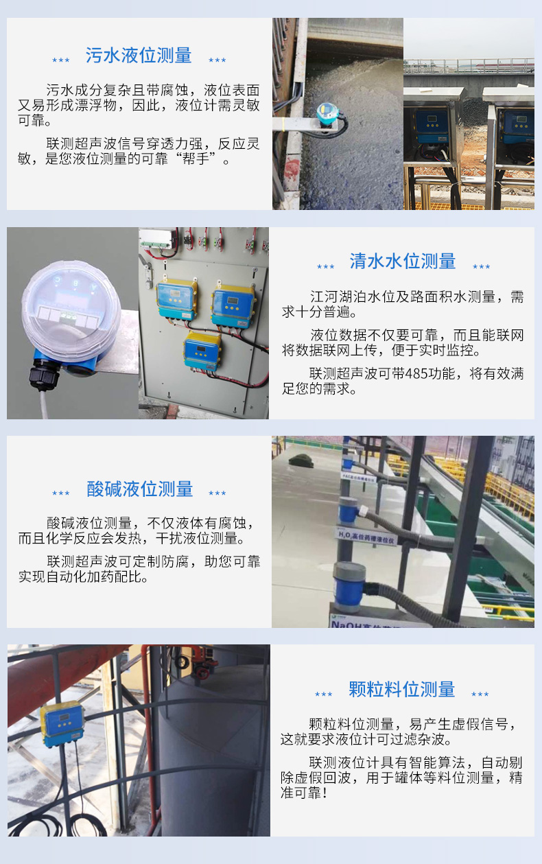 聯測SIN-MP超聲波液位計升級款。適用場合:污水處理 窨井 工廠水箱 罐體 市政工程 自來水 水利水電 鋼鐵 煤礦 電力 石油化工 城市內河湖泊、交通以及食品加工等高精度要求行業。